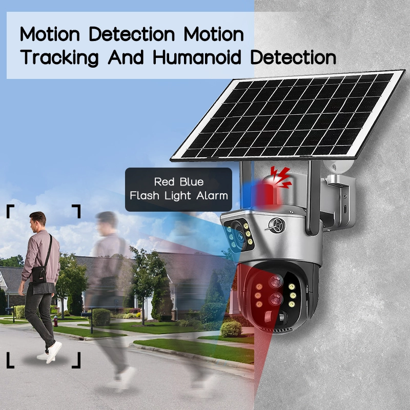 كاميرا مراقبة بالطاقة الشمسية 6K ثلاثية العدسة بدقة 12 ميجابكسل 4G Zoom Optique X10