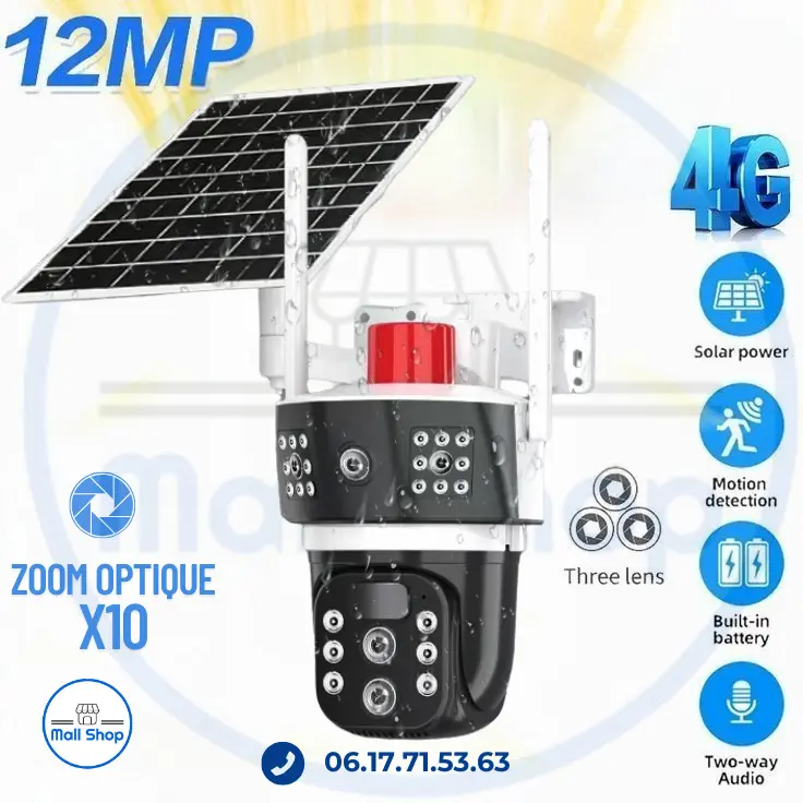 : Zoom Optique 12 Méga 4G مميزات كاميرا طاقة شمسية