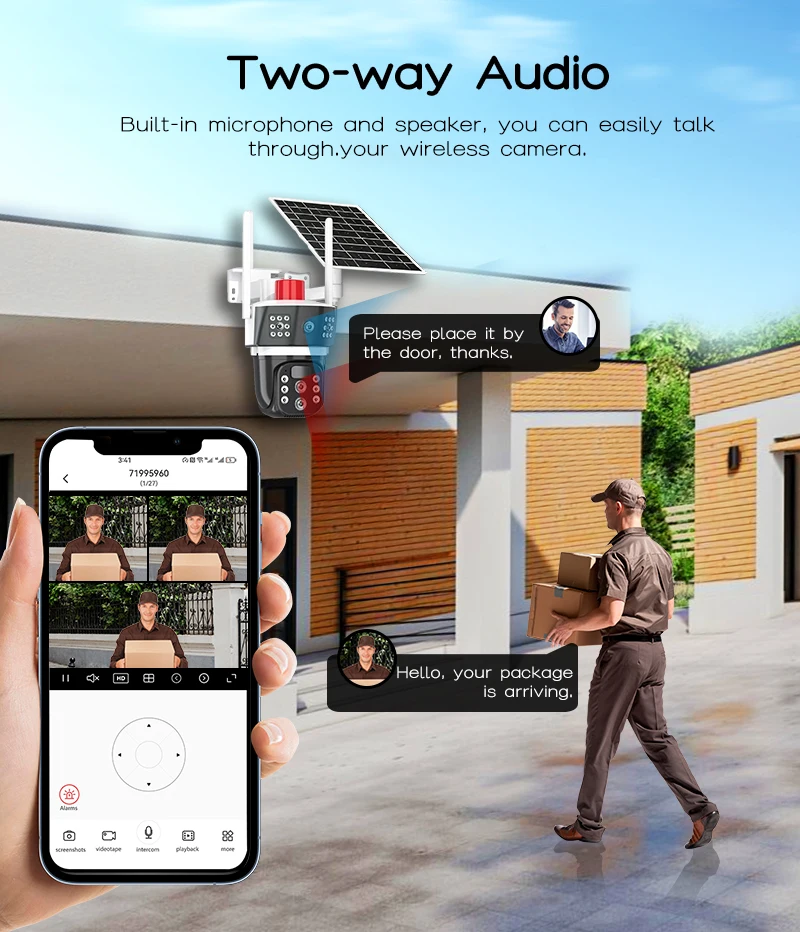 باستخدام كاميرا المراقبة بالطاقة الشمسية 4 جي يمكنك الاعتماد عليها للحفاظ على الأمان ومراقبة المناطق الخارجية بكفاءة تامة. سوف توفر لك هذه الكاميرا الهدوء والطمأنينة التي تحتاجها