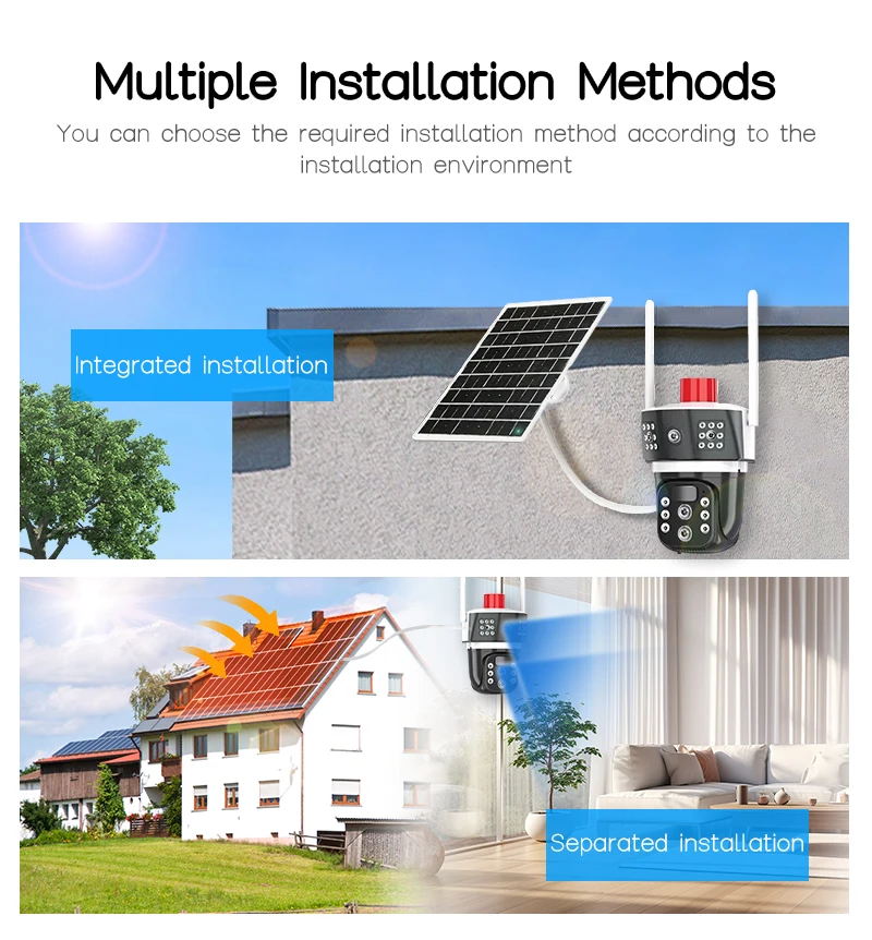 تعتبر كاميرا طاقة شمسية بثلاث عدسات 12 ميجابكسل من الخيارات المثالية للحفاظ على الأمان ومراقبة المناطق الخارجية بكفاءة وسهولة مما يوفر صورًا واضحة وحادة حتى في أبعد المسافات